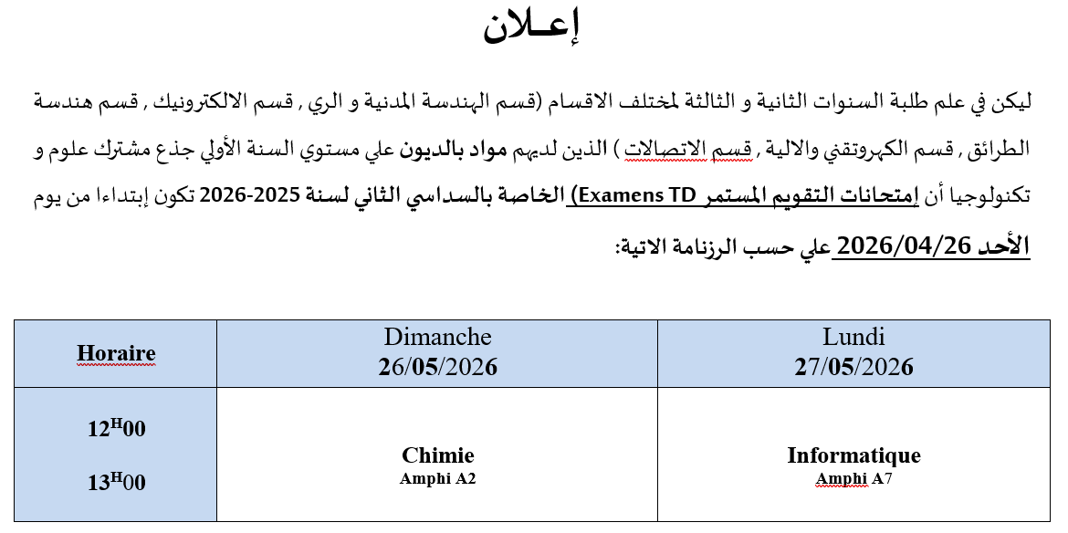 الكليات / MIT كلية الرياضيات و الإعلام الآلي و الاتصالات السلكية و اللاسلكية / قسم الاعلام الالي / السداسيات الزوجية / Licence / L1-Informatique-LMD-S2