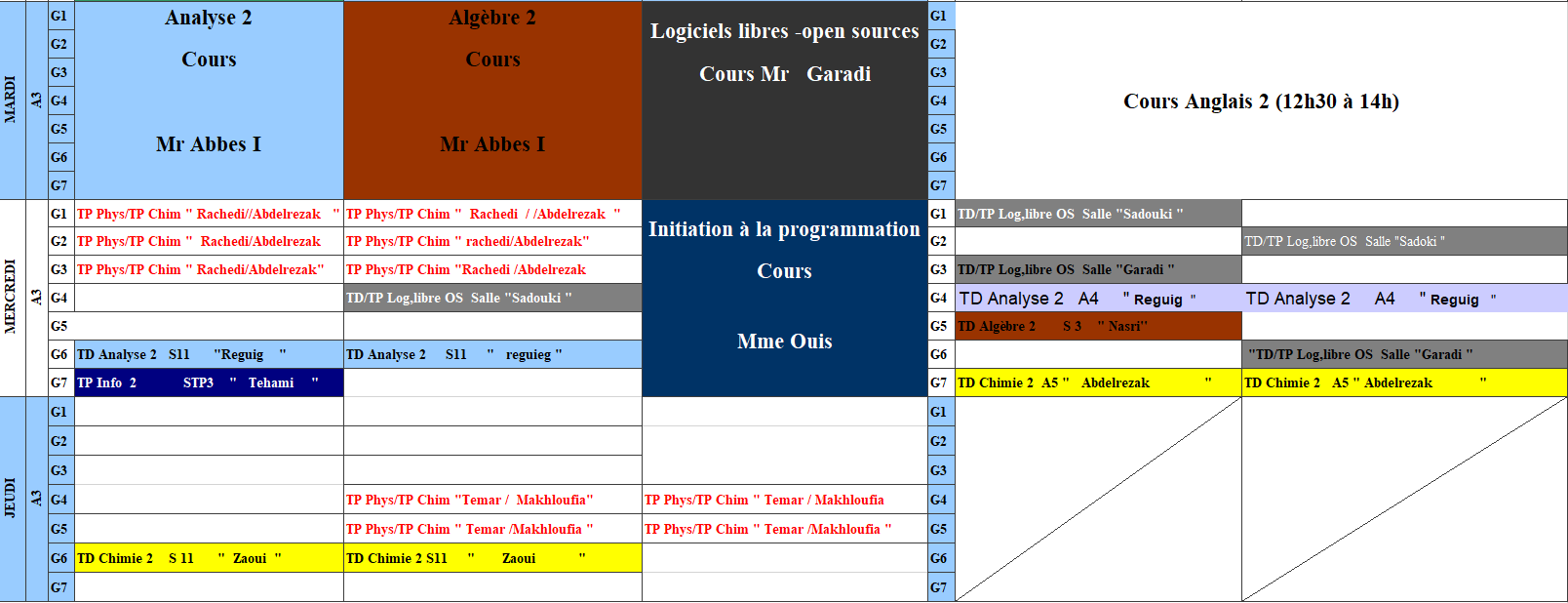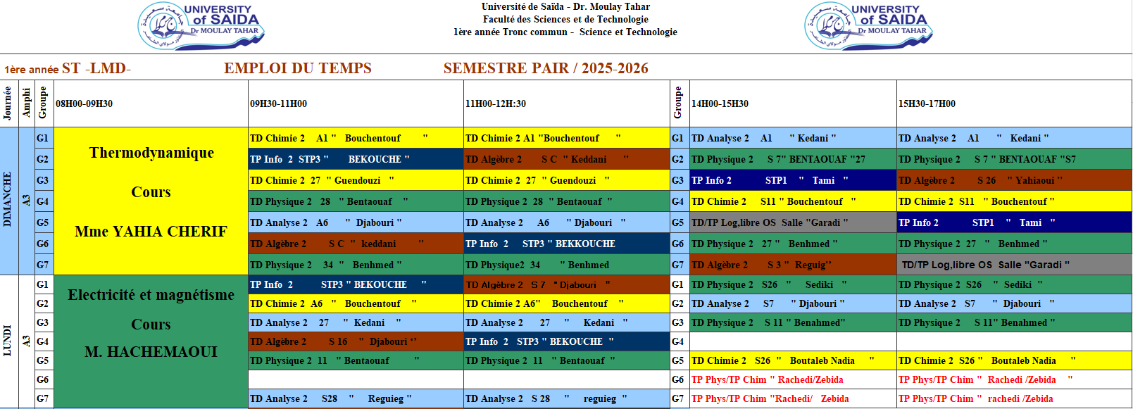 استعمال الزمن للسداسي الزوجي