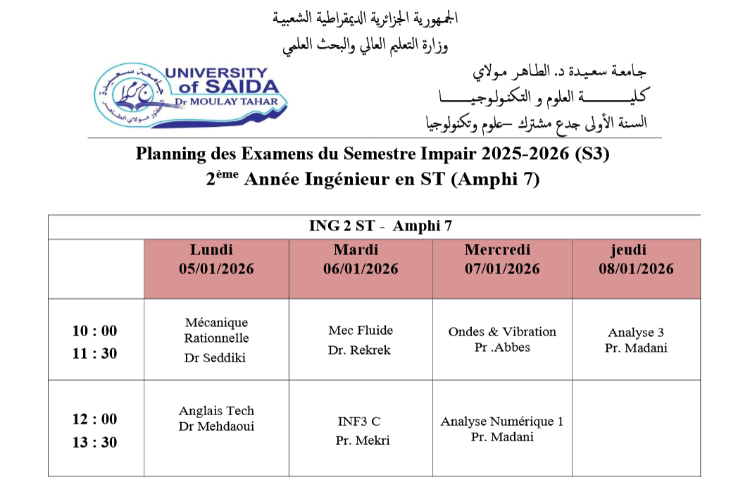 جـامعة سـعـيـدة – د. مــولاي الطاهر كـلـيـة العلوم و التكنولوجيا جذع مشترك |