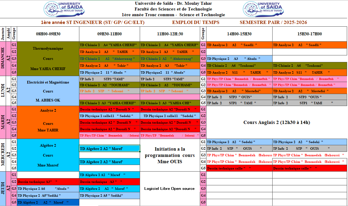 1ère Année Tronc Commun Sciences & Technologie « Ingénieur »