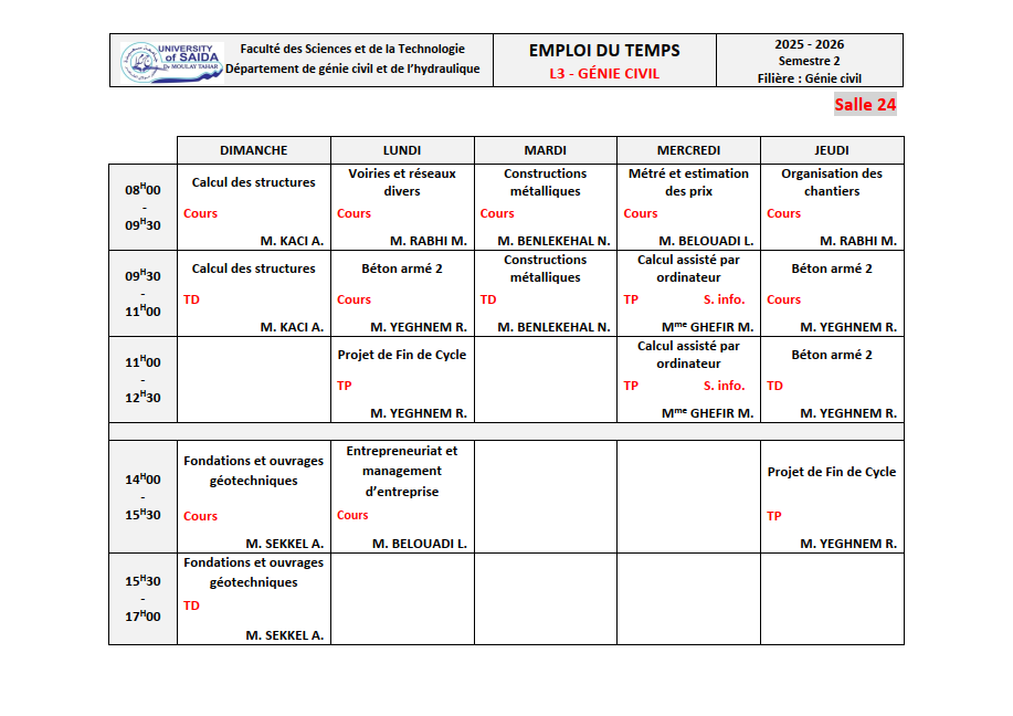 VHS: 67h30 (Cours: 3h00, TD: 1h30)