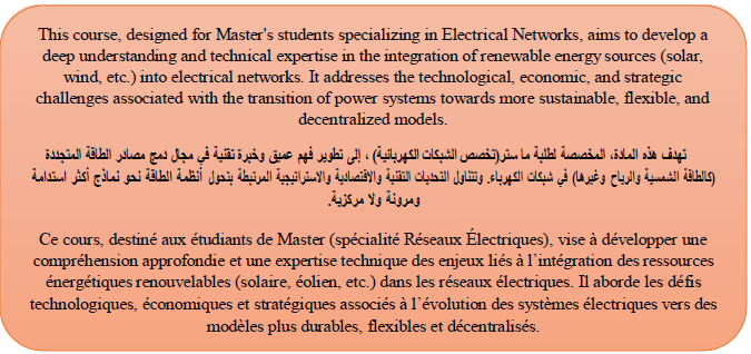 Intégration des ressources renouvelables aux réseaux électriques / Integration of renewable energy into electrical grids