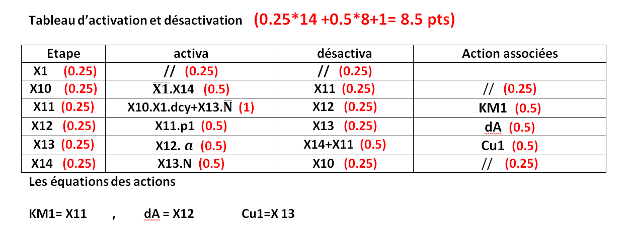 II- Soit le grafcet donne dans la figure suivante, donnent un tableau qui représente les équations activations désactivation des étapes.