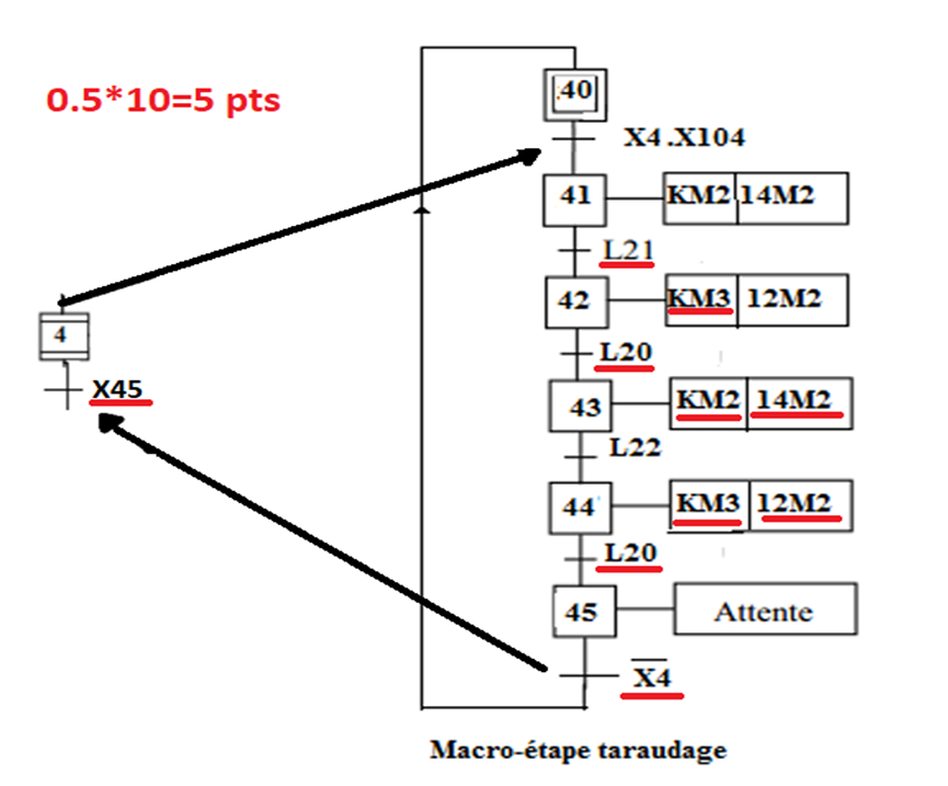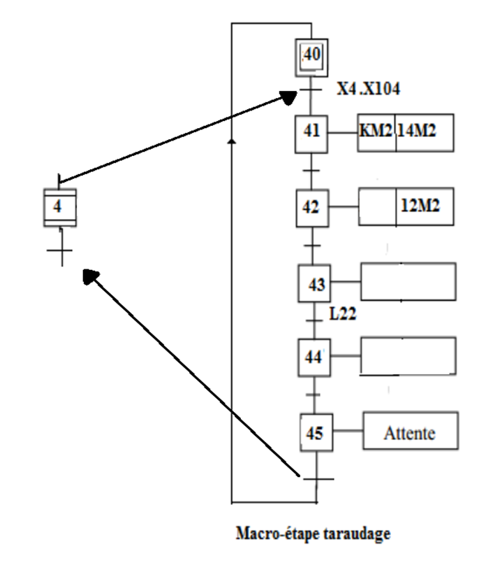 I-1 compléter le grafcet donne dans la figure suivante (Macro-étape taraudage).