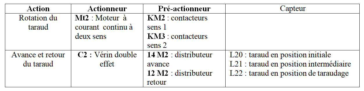 I- SYSTEME AUTOMATISEE DE PERÇAGE ET DE TARAUDAGE