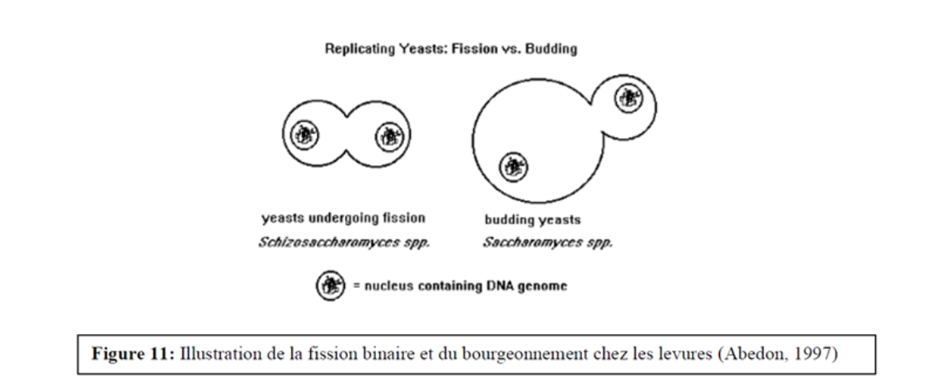 Figure : illustration de la fission binaire et du bourgeonnement chez les levures (Abedon ,1997)