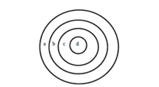 d : La zone de vieillissement, la zone «âgée» de la colonie, au centre, où les hyphes sont souvent creux ou vacuolés, du fait de la migration de leur contenu protoplasmique dans les spores ou dans des parties plus jeunes de la colonie. Dans cette région, des autolyses entraînent la disparition des parois cellulaires.