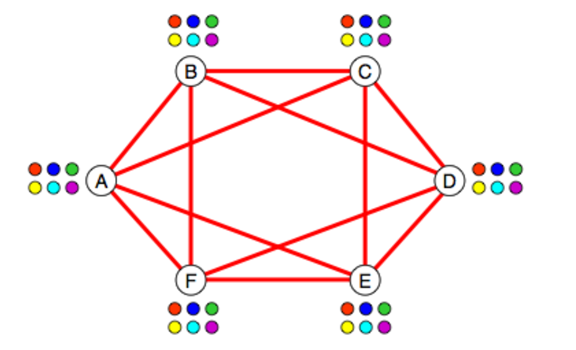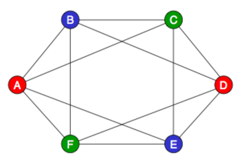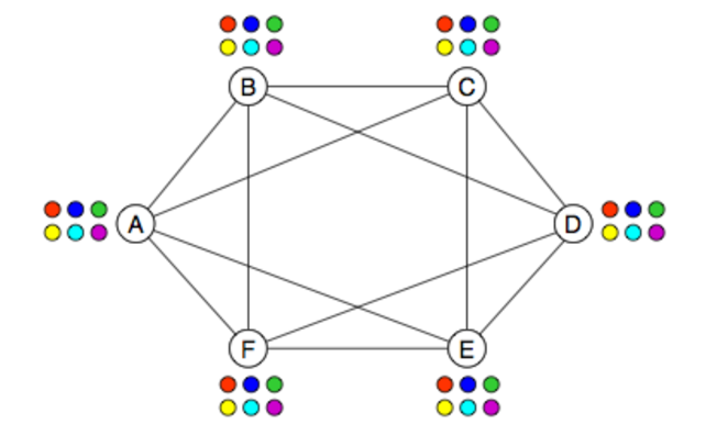 Give each node a name: A, B, C, D, E, F. It represents the colors to assign to the nodes