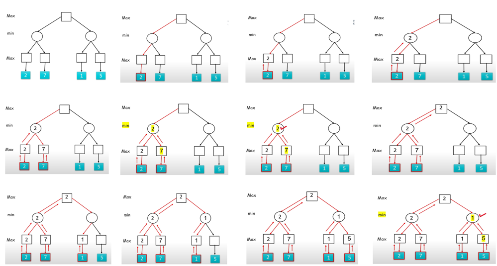 o   Minimizer nodes take the minimum value of children.