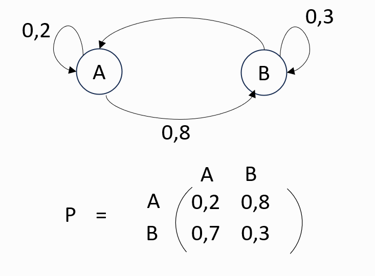 ·       Transition matrix: A matrix that includes all the probabilities of transition between states.