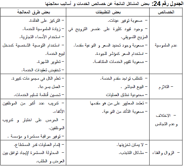 ويبقى الآن توضيح كيفية معالجة المشاكل الناتجة عن خصائص الخدمات، وهذا في الجدول رقم 24 أدناه.