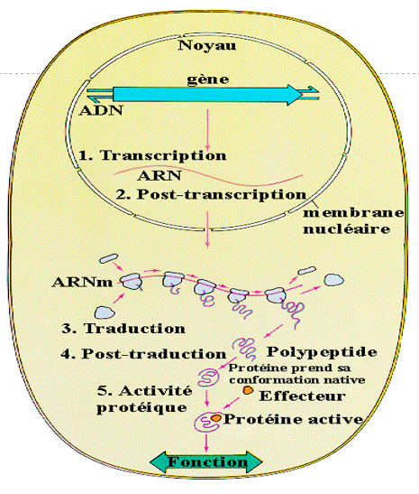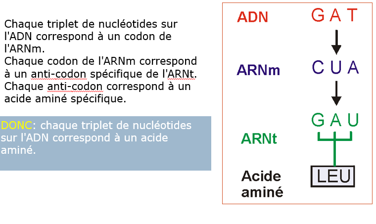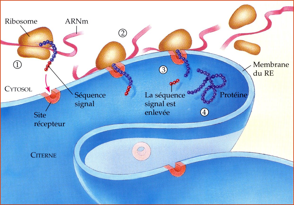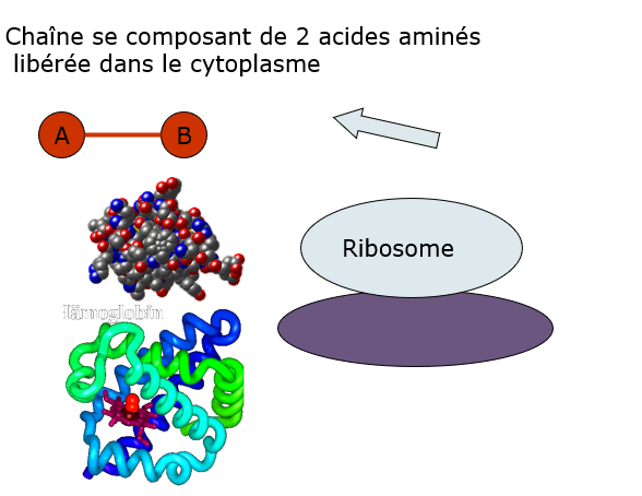 La synthèse de la protéine (assemblage des acides aminés) se fait au niveau des ribosomes.