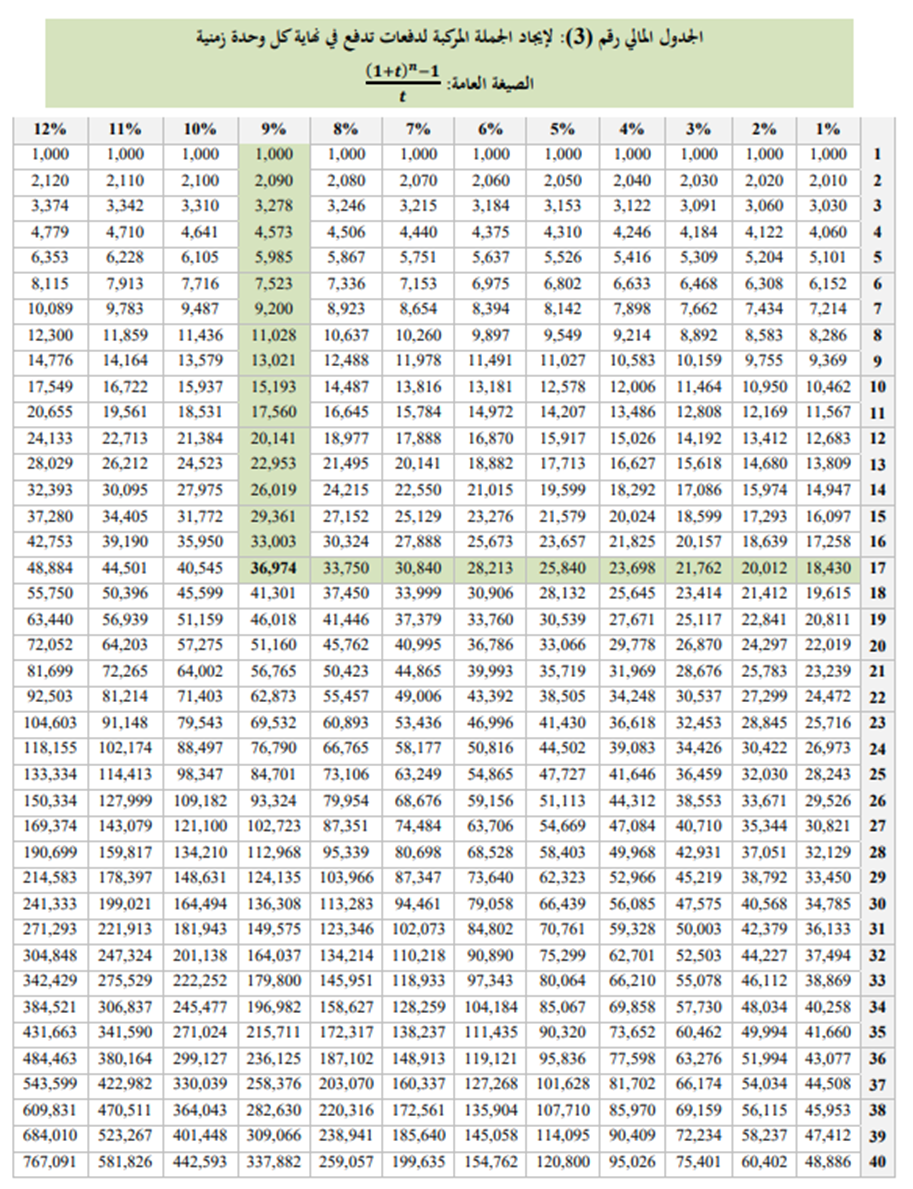 الجملة المكتسبة للدفعات المتزايدة حسابيا نهاية المدة 𝑽𝒏