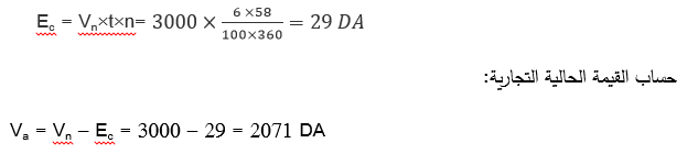 ورقة تجارية قيمتها الإسمية 3000 دج ، مستحقة الدفع في 7 جويلية 2011، عرضت للخصم في 10 ماي 2011، معدل الخصم السنوي 6% .