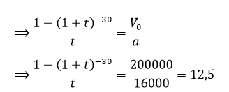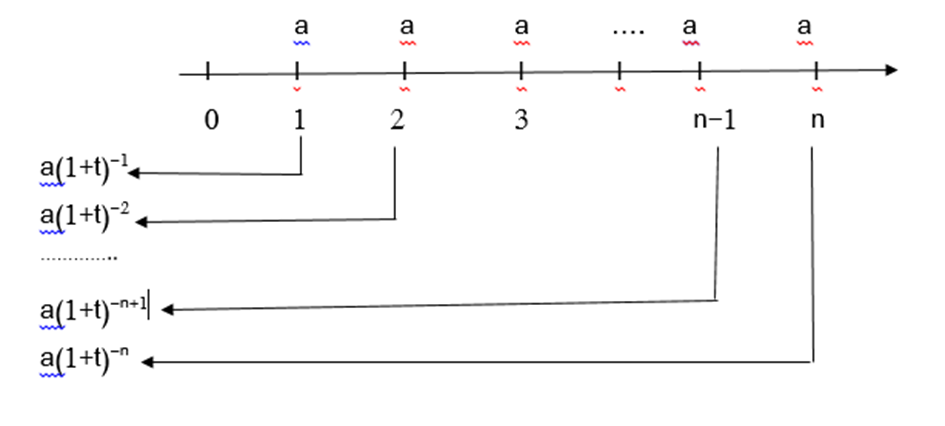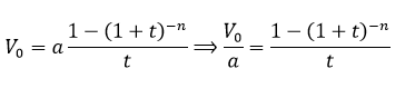 V0= a(1+t)-1 + a(1+t)-2 +……………………+ a(1+t)-n+1 + a(1+t)-n