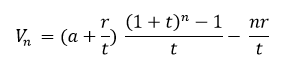 Vn= a(1+t)n-1 +a (1+t)n-2 +a(1+t)n-3 + ………. +a(1+t) + a + r (1+t)n-2 +r(1+t)n-3 + ………. +(n-2)r(1+t) + (n-1)r