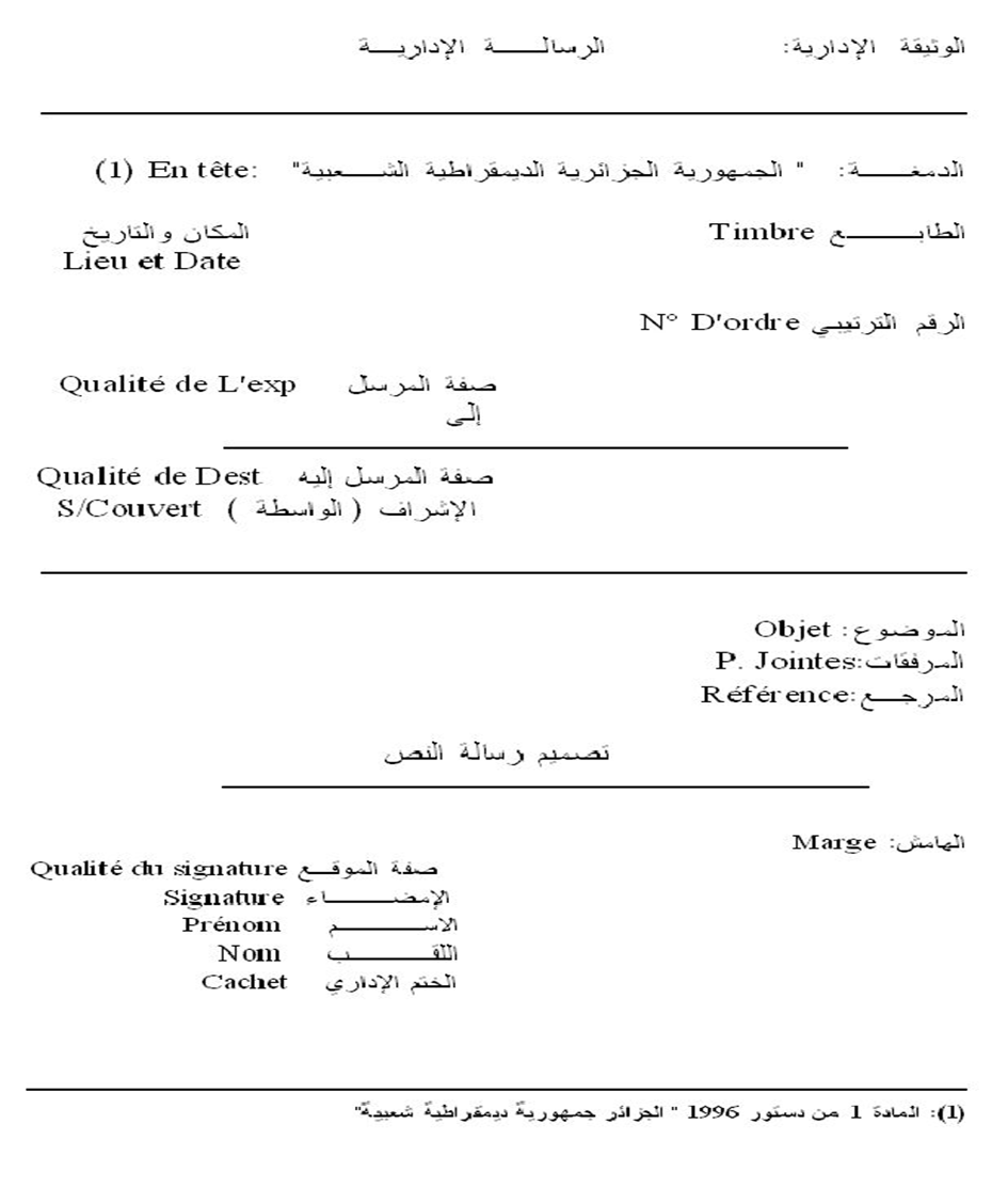 الشكليات المطلوبة في المراسلات الإدارية : احترام الشكليات التالية :