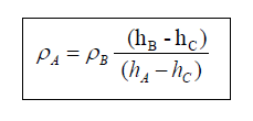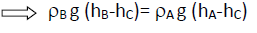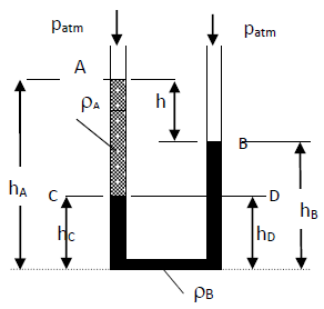 Un tube en U rempli d’un liquide de masse volumique (ρB), si dans l’une des branches un autre liquide non miscible au premier et de masse volumique (ρA) est versé, il est observé une dénivellation h=(hA-hB) entre les deux liquides. Les deux surfaces libres étant à la pression atmosphérique.