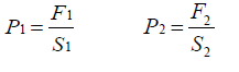 D’après le principe de Pascal, il est possible d’écrire les équations suivantes:
