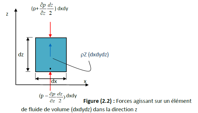 Les forces qui agissent sur cet élément de volume (dxdydz) dans la direction z sont :