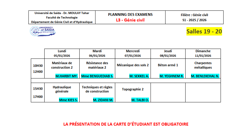 Consultez les cours de l'année académique 2025/2026