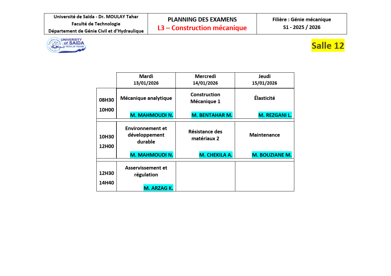 Consultez les cours de l'année académique 2025/2026