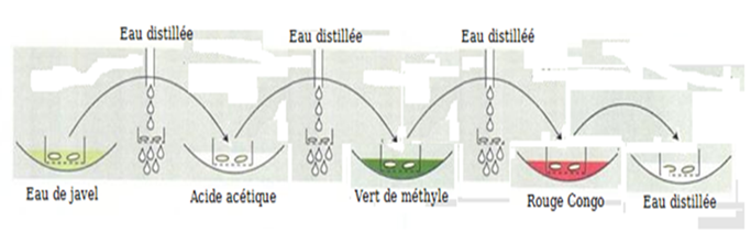 3-      mordancées avec de l’acide acétique pendant 5 min ;