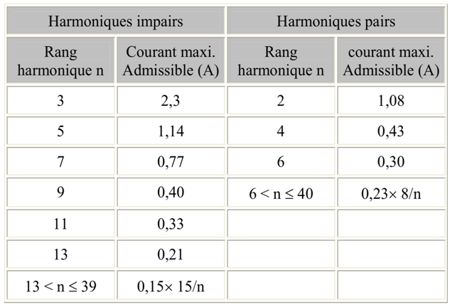 Tableau 2 : Niveau de compatibilité pour les courants harmoniques sur les réseaux basse tension (Norme CEI 61000-3-2)