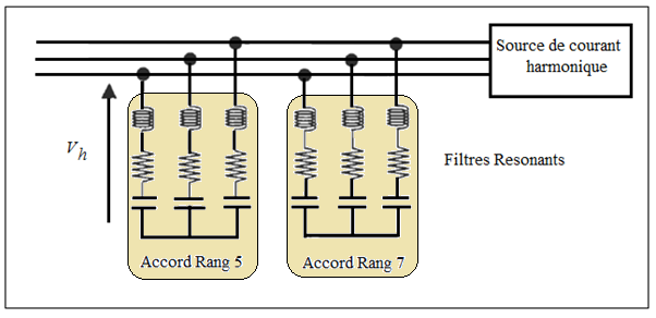 1. des filtres résonants accordés sur les premiers rangs harmoniques (rangs 5 et 7) où les injections de courant sont importantes.