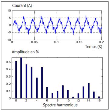 Figure a : Spectre harmonique de la tension Figure b : Spectre harmonique du courant