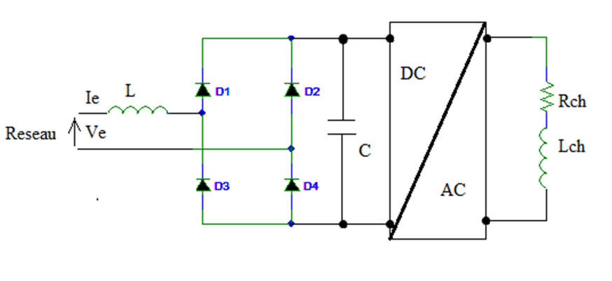 Etant donner le montage illustré dans la figure 1, une analyse harmonique de la tension d`entrée Ve et le courant d`entre Ie a été donnée dans les tableaux 1 et 2 respectivement pour le cas des mesures sans adjonction de la self L et le cas avec adjonction de la self L en série avec le récepteur.